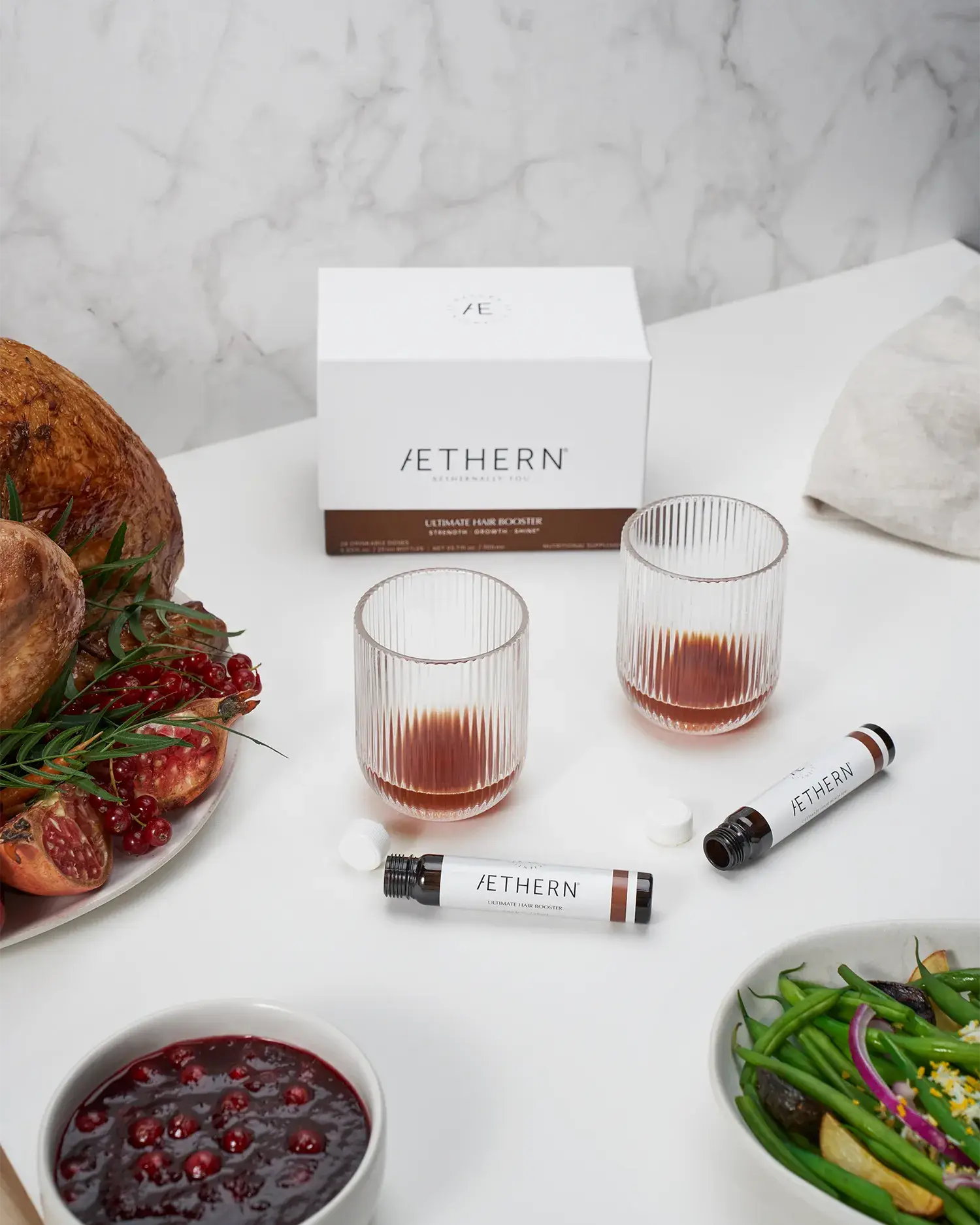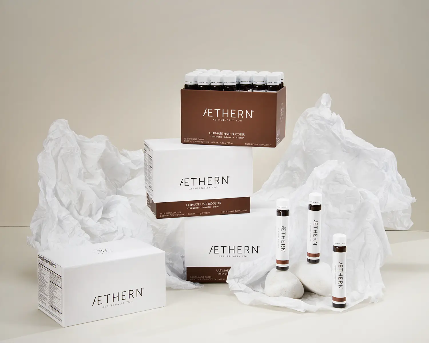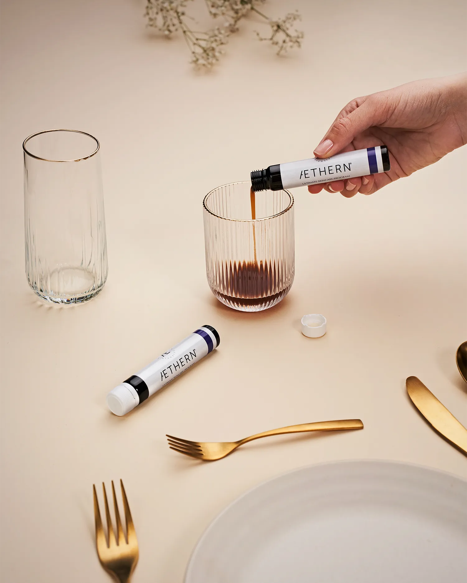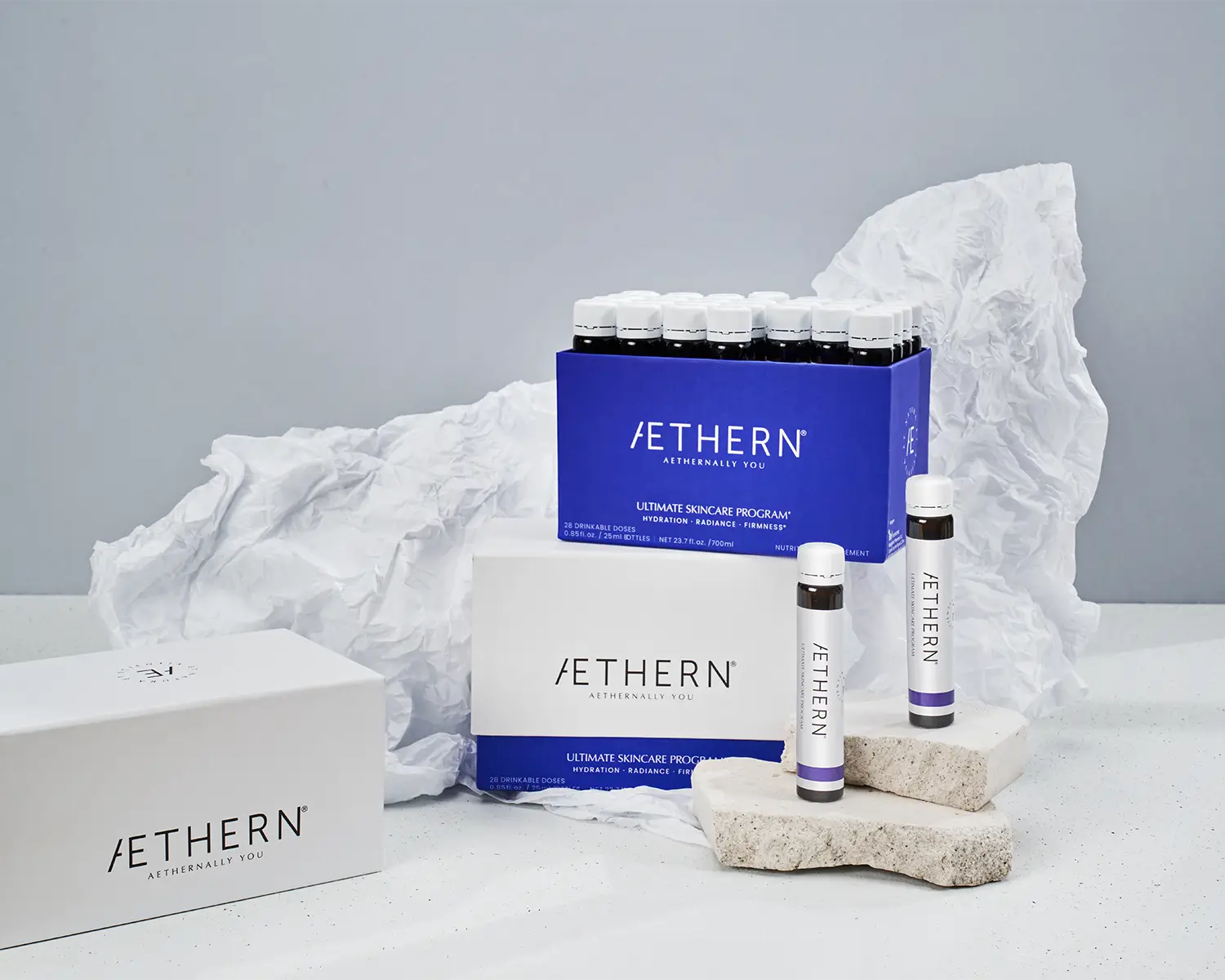 Realizamos la producción fotográfica y el retoque para esta campaña de Aethern, marca de nutricosmética enfocada al mercado estadounidense.